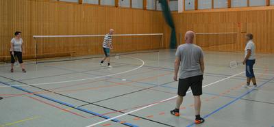 Badminton HelgaBadminton sieht auf den ersten Blick aus wie Federball. Während beim Federball einfach möglichst oft hin- und her gespielt wird, ist Badminton ein anspruchsvoller Sport. Man sollte schnell sein und es braucht Ausdauer. Beim Badminton stehen sich zwei oder vier Spieler auf einem - durch ein Netz getrenntes Feld - gegenüber. Beim Badminton wird der Ball so geschickt übers Netz schlagen, dass der Gegner ihn nicht mehr erwischen und zurückspielen kann, ähnlich beim Tennis.